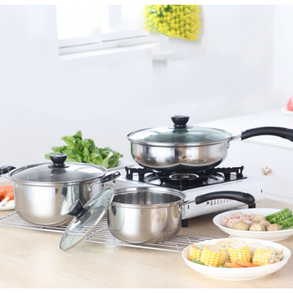 Custom Logo 6-Piece Stainless Steel Cookware Modern Classic Design Kitchen Wares Casserole and Saucepan for Home Cooking