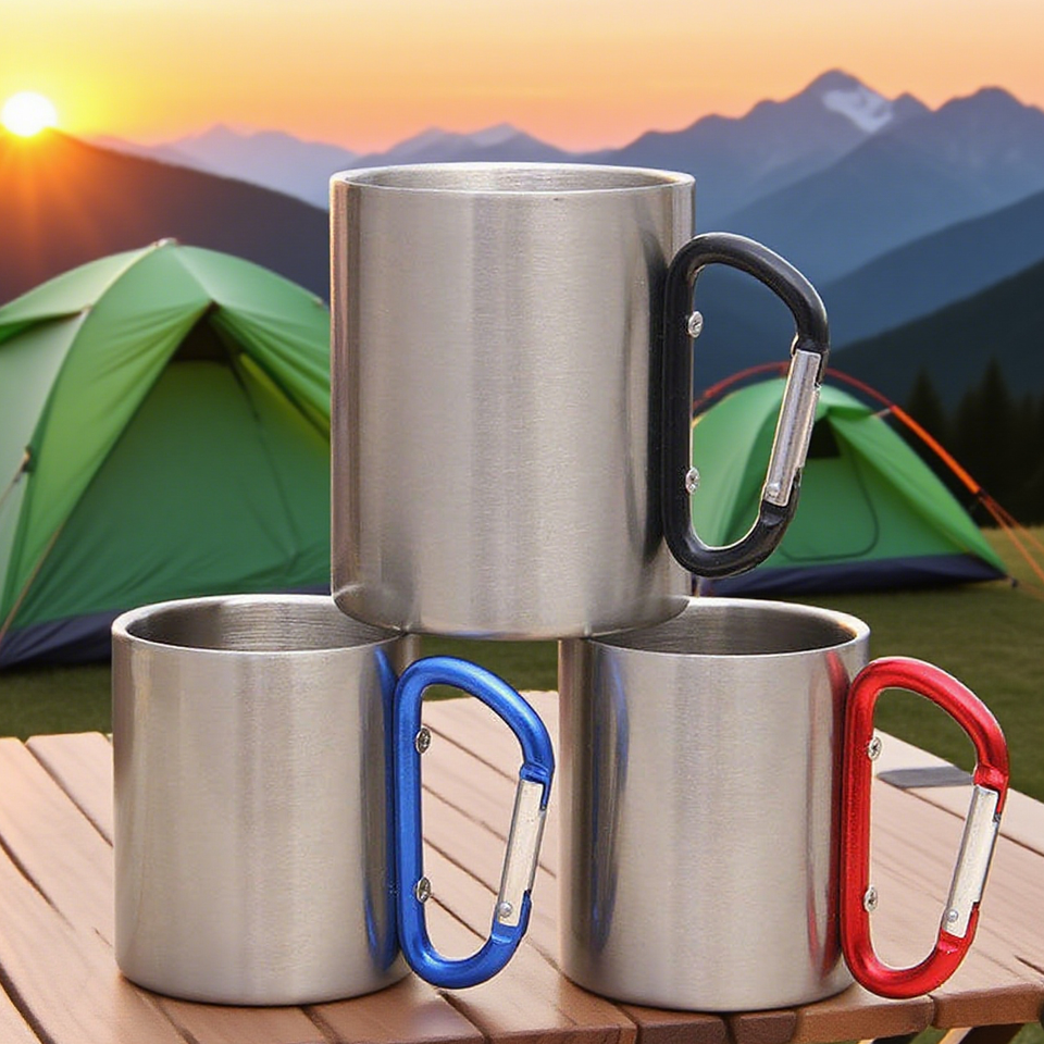 Custom Logo 8oz Camping Travel Handle Carabiner Mugs 220ml Stainless Steel Double Wall Outdoor Sports Coffee Mug