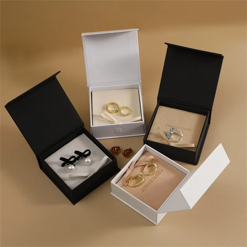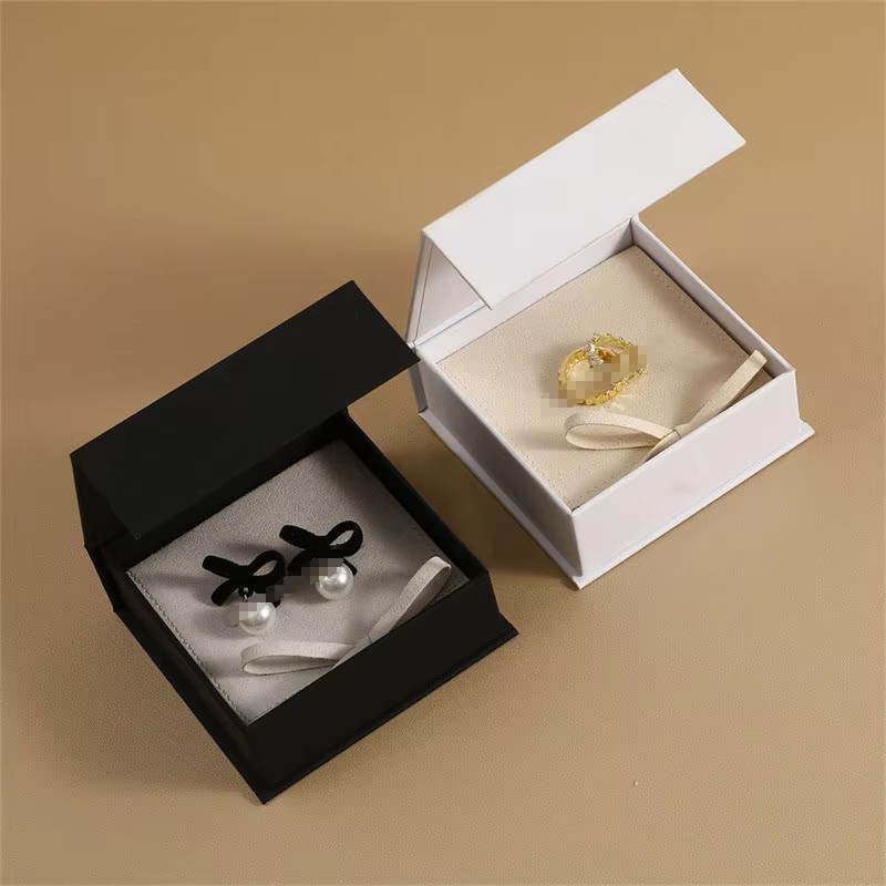 Custom Logo 9*9 Square Cardboard Jewelry Box Microfiber Pouch Luxurious Stone Design Magnetic Flip Gift Box for Rings Bracelets