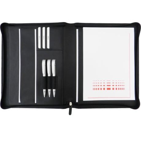 Custom Logo A4 Letter Size Writing Folder Zipper Paper PU Material for School Presentation Includes Pocket Ring Binder Bag