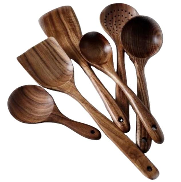 Custom Logo Acacia Wood Spatula and Soup Spoon Set Non-Stick Household Kitchen Supplies Wooden Utensils for Party Occasions