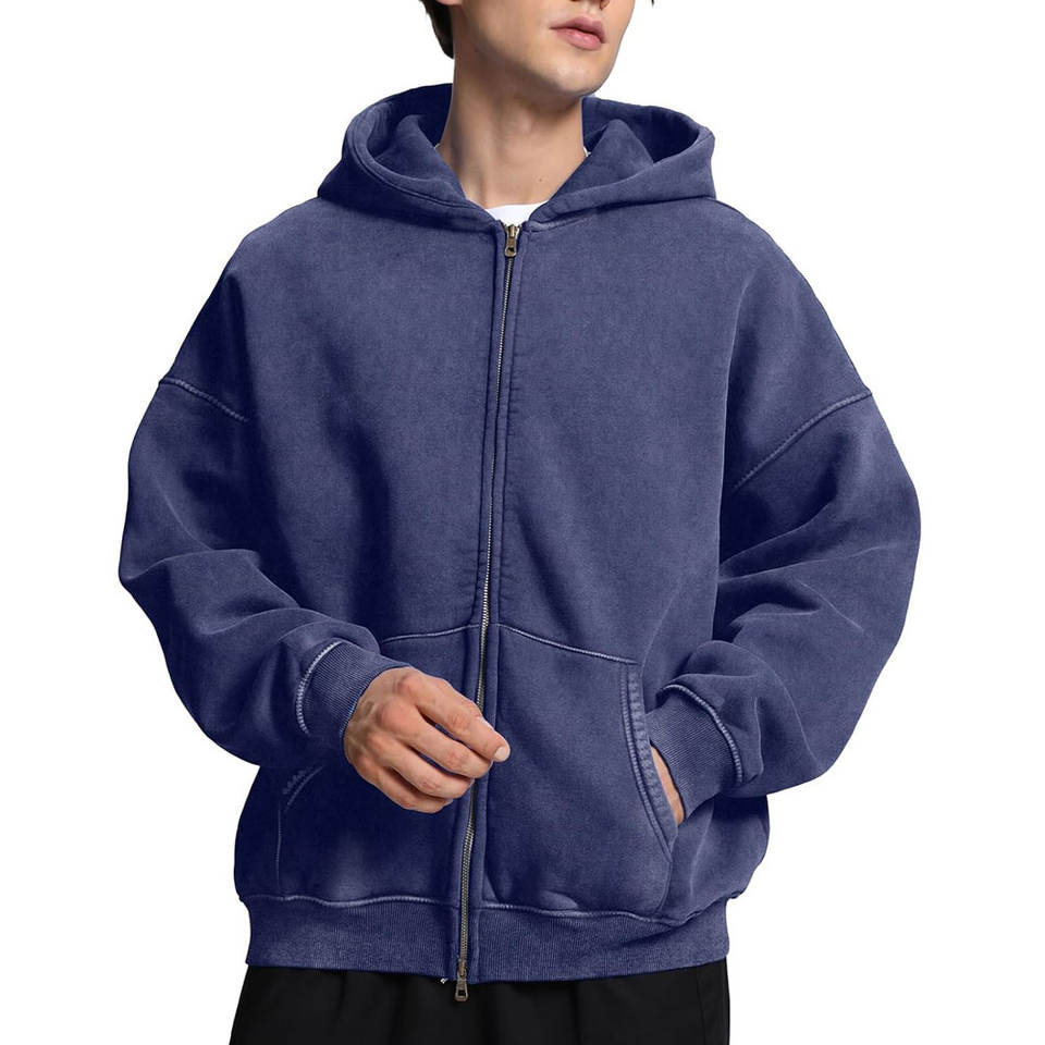 Custom Logo Acid Wash Hoodies 100% Cotton Vintage Faded Hooded Jacket Zip up Acid Wash Men Thermal Street Style Fashion Hoodies