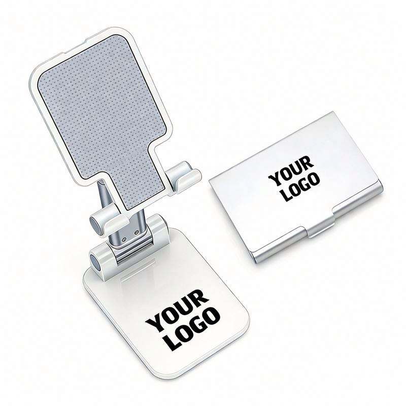 Custom Logo Adjustable Angle Multifunctional Phone Stand with ABS+PP+Metal Material for Business Promotions and Desktop Use