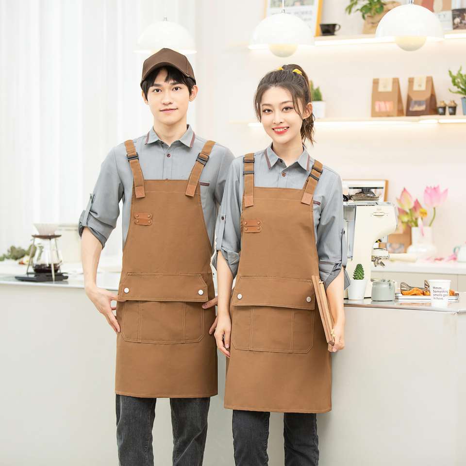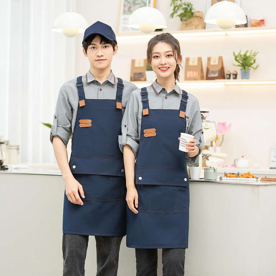 Custom Logo Adjustable Reusable Cotton Women Waterproof Apron Baking Chef Cooking Kitchen Apron With Two Pockets