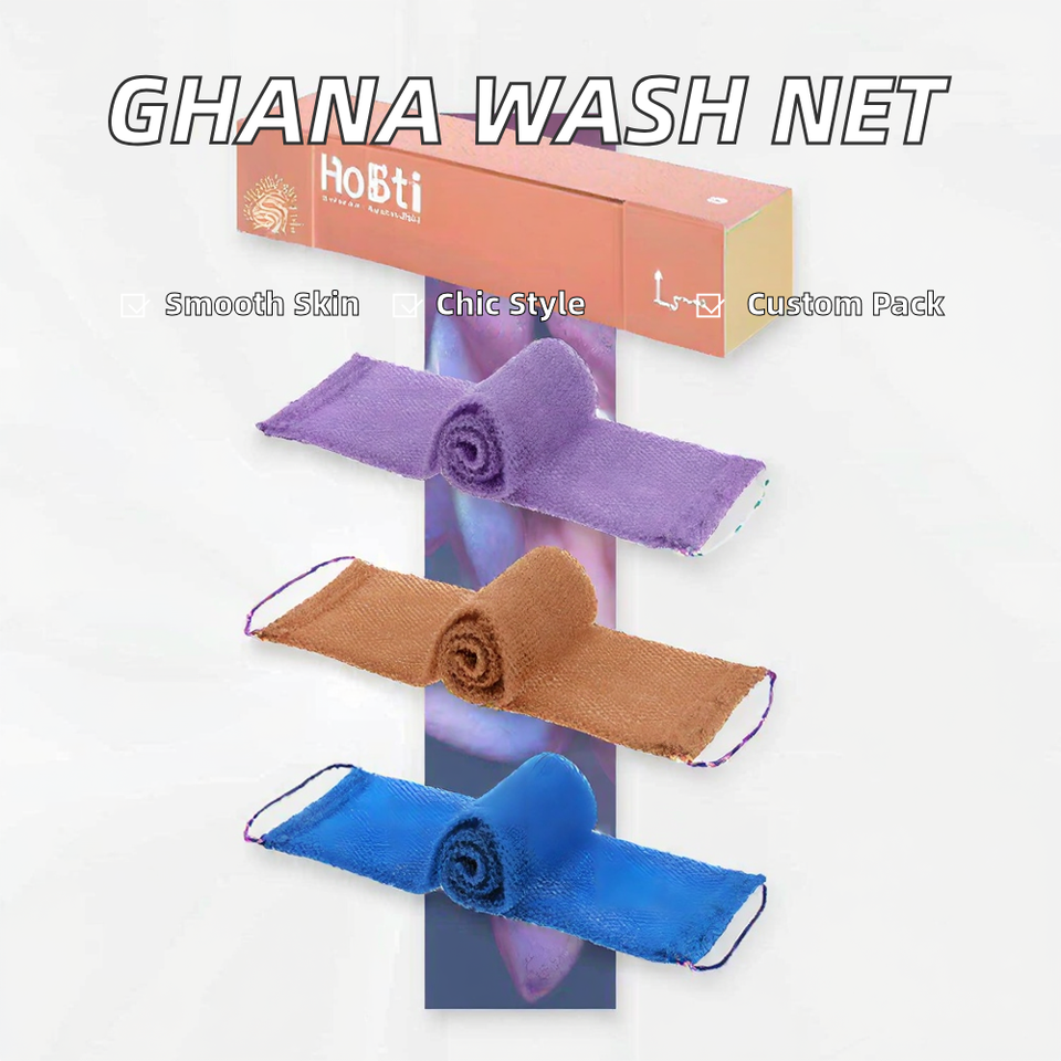 Custom Logo African Net Sponge Nylon Body Scrubbing Washcloth Rag with Belt Smoother Skin-Ghana Sapos Wash Net Exfoliating Brush