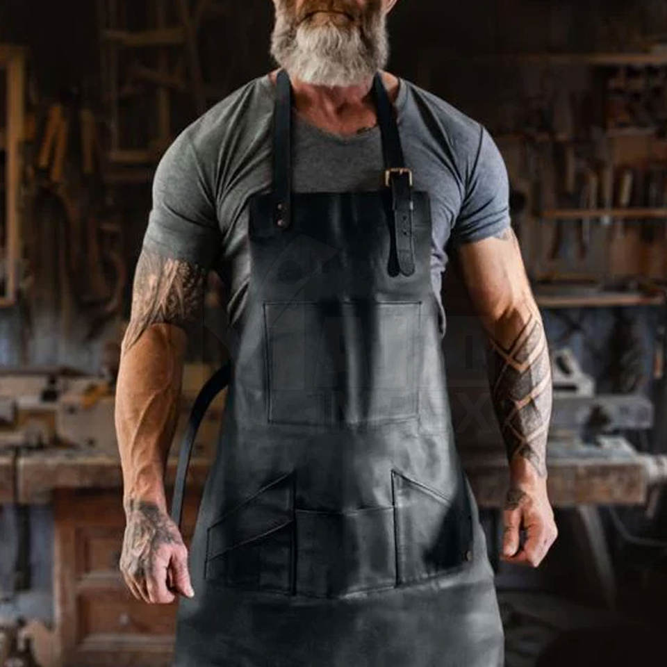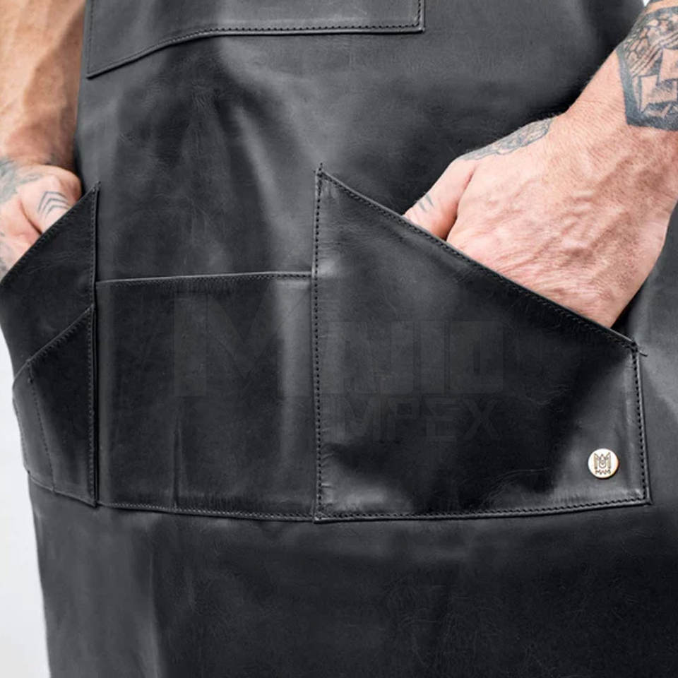 Custom Logo Breathable High Quality Unisex Kitchen Waterproof Leather BBQ Chef Aprons