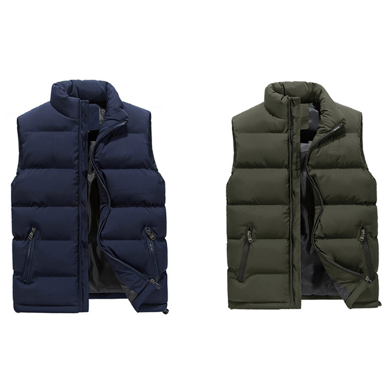 Custom Logo Autumn and Winter Stand Collar Zipper Pocket Winter Jacket Black Quilted Down Puffer Waistcoat Men's Vest