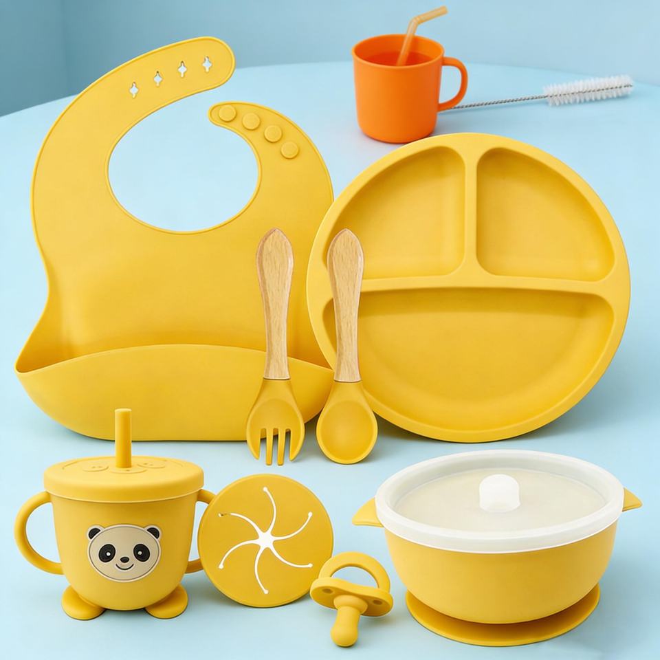 Custom Logo Food Grade BPA Free Eco-Friendly Durable Silicone Baby Plate Set Toddler Suction Plates Sippy Cup Reusable Non Toxic