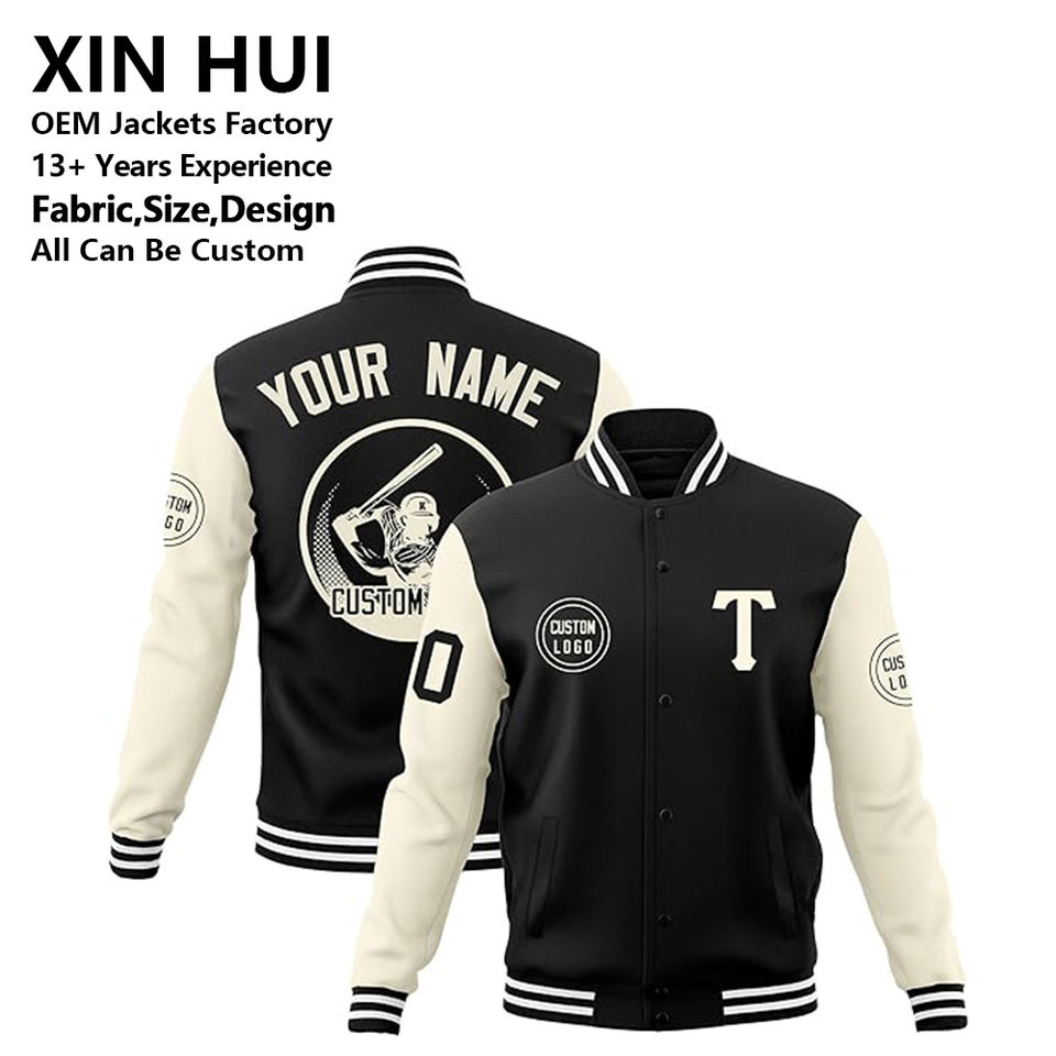 Custom Logo Baseball Varsity Jacket Men Streetwear Embroidery Patchwork Blank Team Uniform Letterman Jacket Fleece Bomber