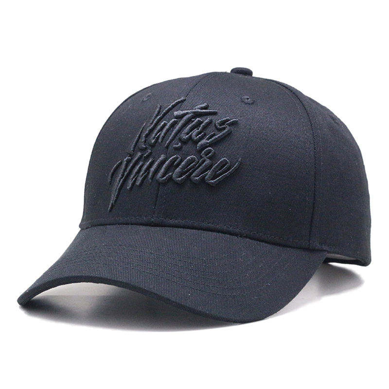 Custom Logo 6 Panel Curved Brim Baseball Caps Sporty Heat-Transfer Printing on Cotton Adjustable Unisex Black Sports Hats