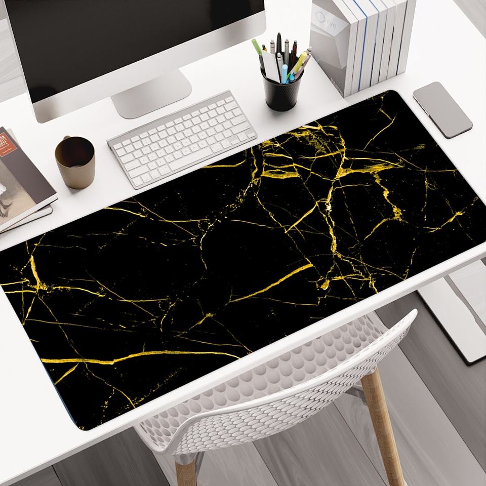 Custom Logo Black Gold Marble Computer Keyboard Mat Large Natural Rubber Base Mousepad Large Gaming Mouse Pad with Stitched Edge