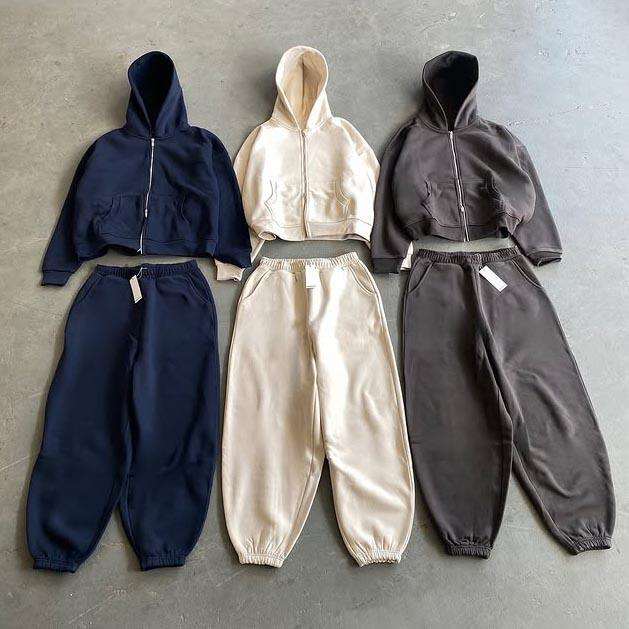Custom Logo Blank Sweatsuit 100% Cotton Baggy Tracksuit Joggers Oversized Boxy Fit Flared Sweatpants and Hoodie Sets for Men