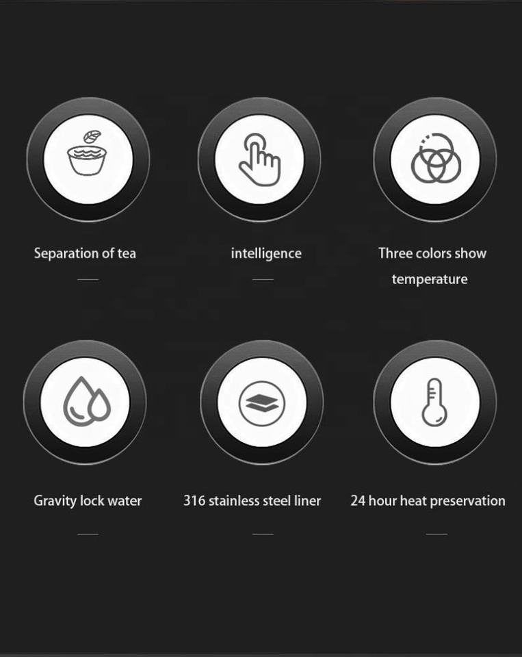 Custom Logo Bluetooth Enabled Tea Separation Smart Water Bottle Stainless Steel Thermos Tumbler Digital Vacuum Flasks LED