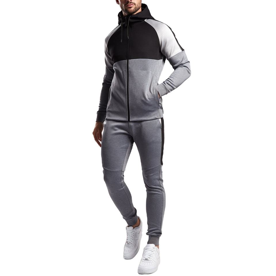 Custom Logo Breathable Zip Jacket Hooded Jogging Pant Plus Size Mens Gym Fitness Training Two Piece Sportswear Set Hooded
