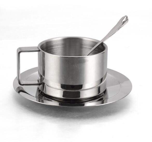 Custom Logo Capacity Double Wall Stainless Steel Insulated Espresso Cappuccino Mug Coffee Cup and Saucer Sets