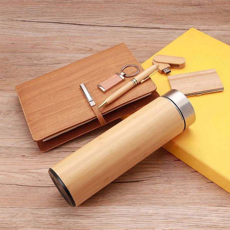 Custom Logo Card Holder Bamboo Bottle Bamboo Pen Notebook and Keychain Corporate Gift Set