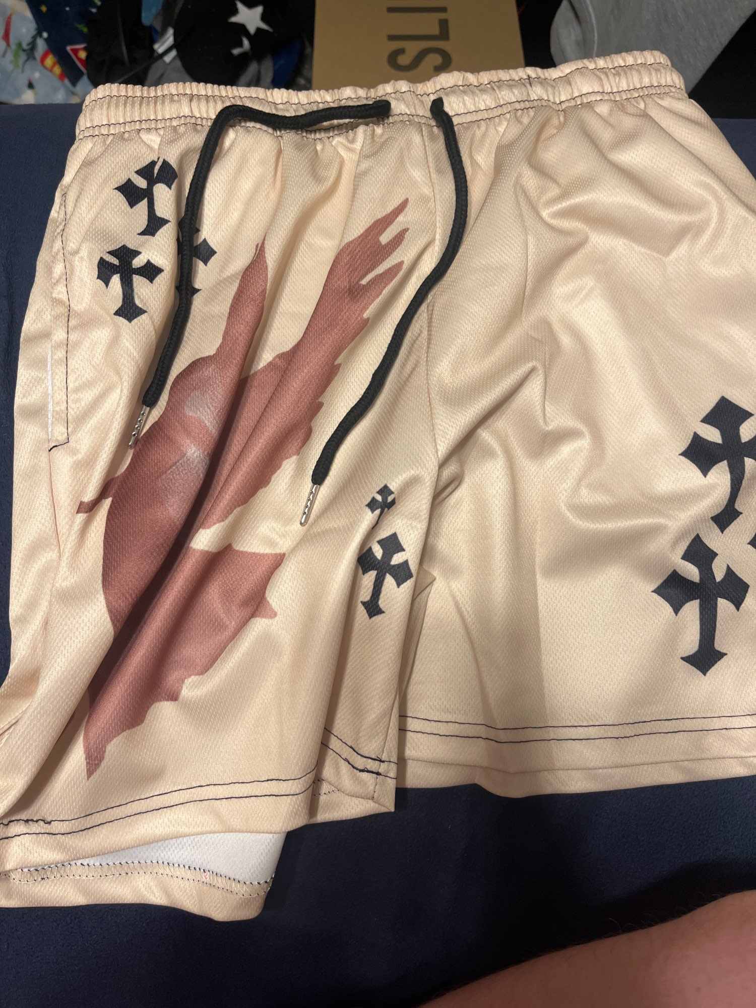 Custom Logo Casual Gym Men Mesh Basketball Shorts Angel Cross Print Oem Full Print Mesh Shorts Custom 5 Inch Inseam RIMS-15501
