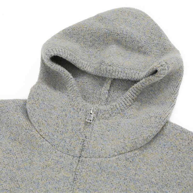 Custom Logo Casual Hooded Knitted Cardigan Sweater Cotton Pockets Loose Zip Up Hoodie for Autumn Winter