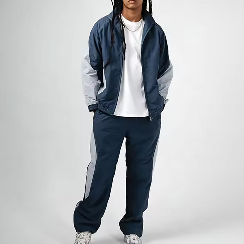 Custom Logo Casual Reflective Jogging Men's Windproof Breathable Two-Piece Tracksuit Sets Nylon/Cotton Pants Baggy Sweat Suit