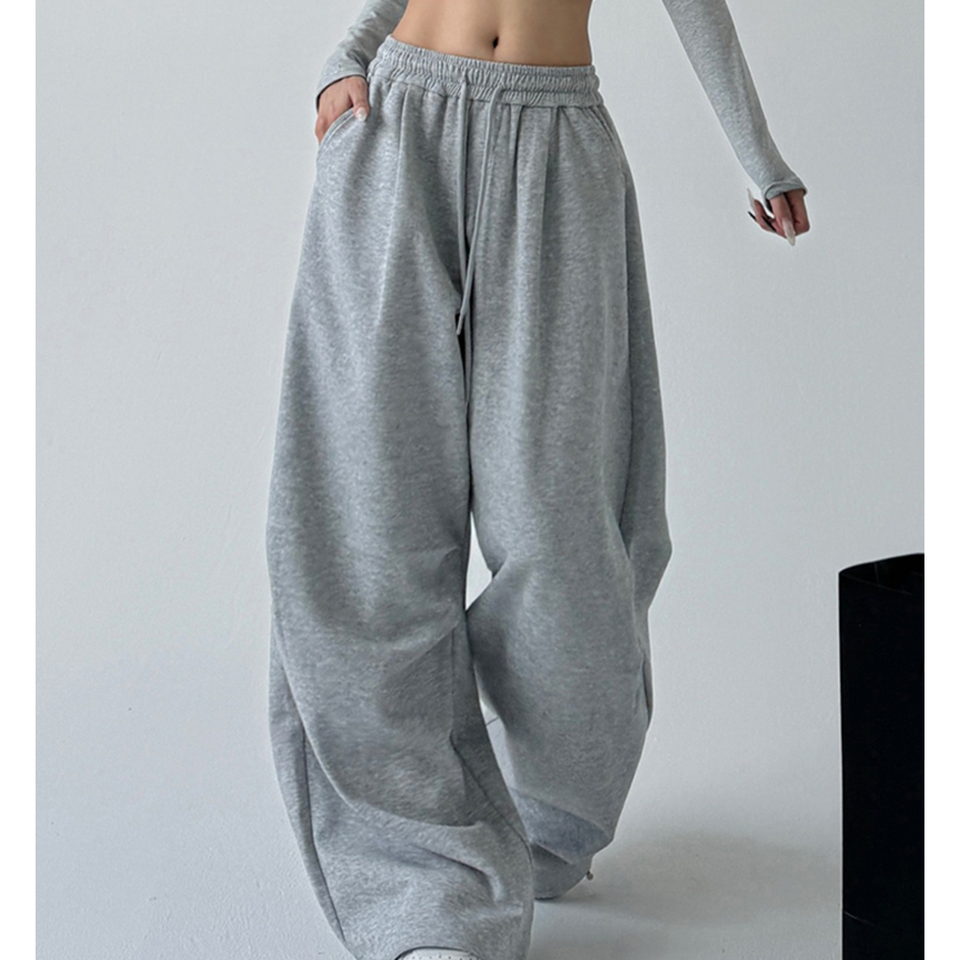 Custom Logo Casual Women's Pants & Trousers Wide Leg Sweatpants High Waisted Elastic Drawstring Jogger sweatPants Women