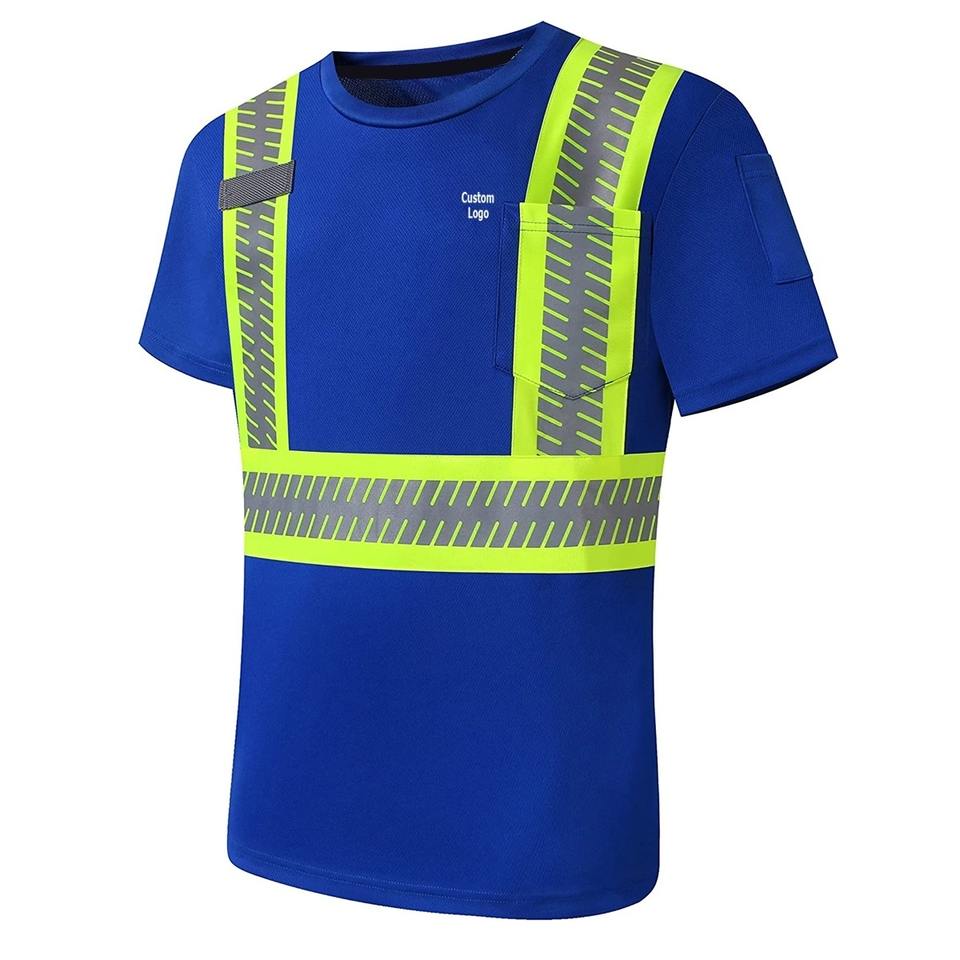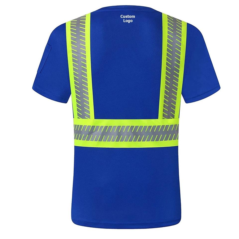 Custom Logo Class 2 Hi Vis Safety Reflective T-Shirts Short Sleeve Polyester Work Wear with Pocket Type R