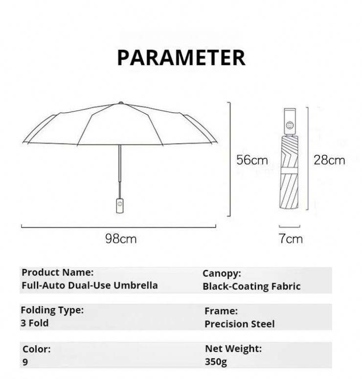 Custom Logo Classic Pongee Fully-Automatic Waterproof Sun Protection Windproof UV Proof Compact Umbrella Promotional