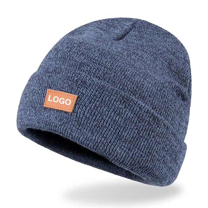 Custom Logo Classic Style Winter Ribbed Knitted Beanie Skull Caps with Single Cuff Plain Knitted Beanie Hat