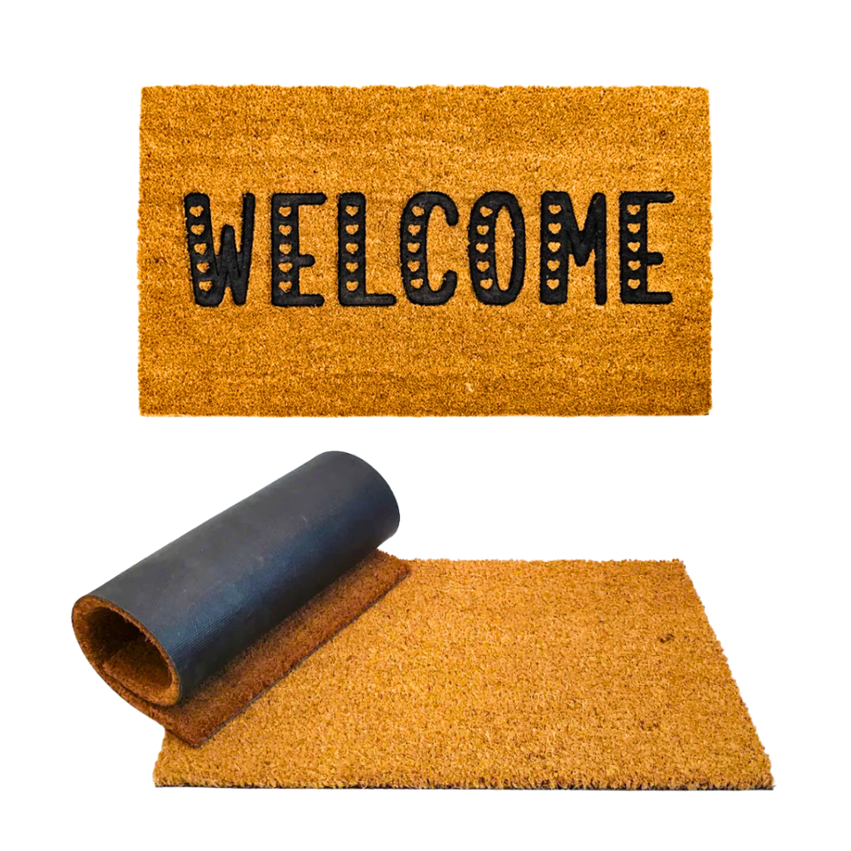 Custom Logo Coconut Coir WELCOME MATS RUGS with PVC backing Non-Slip Doormat Ideal for Apartments, Shops, & Villas