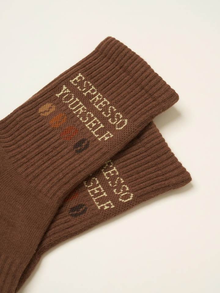 Custom Logo Coffee Espresso Jacquard Design Grip Socks Custom Material Cotton Pilates Socks Women Custom Colors Yoga Socks