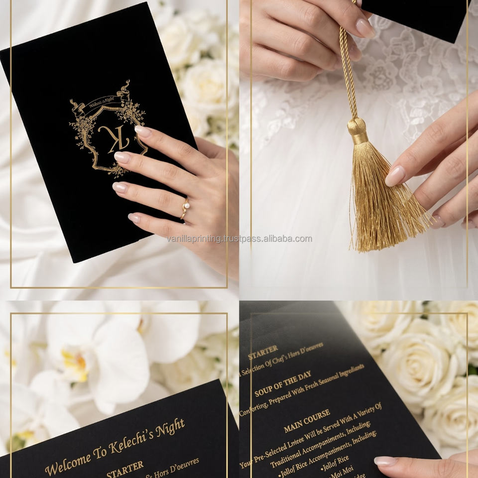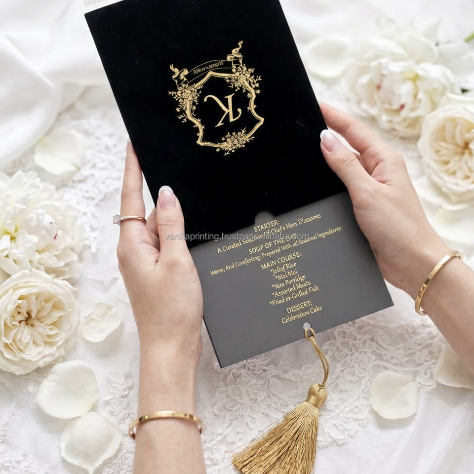 Custom Logo Collaborative Souvenir Wedding Card Set Tassel Invitation RSVP Menu Paperboard Letterpress Printing Coated Paper