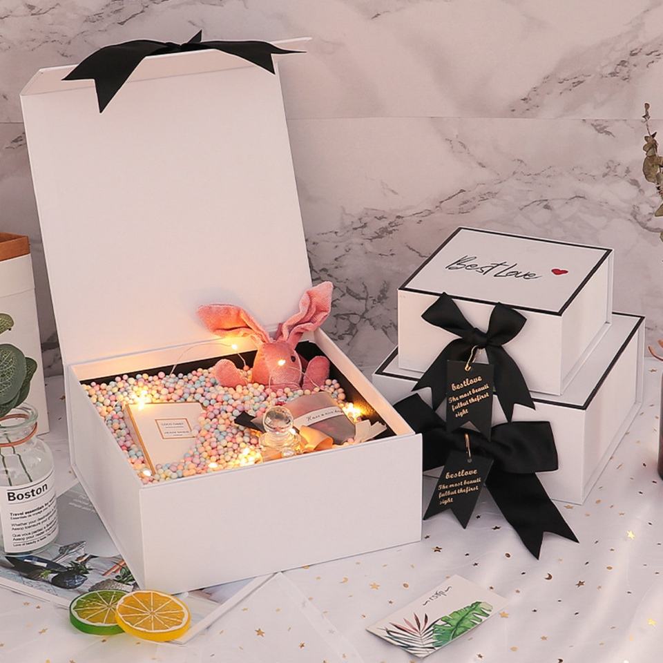 Magnetic Paper Gift Box with Pink Ribbon Closure