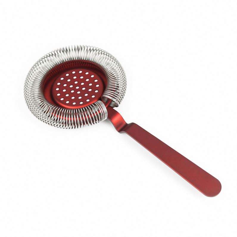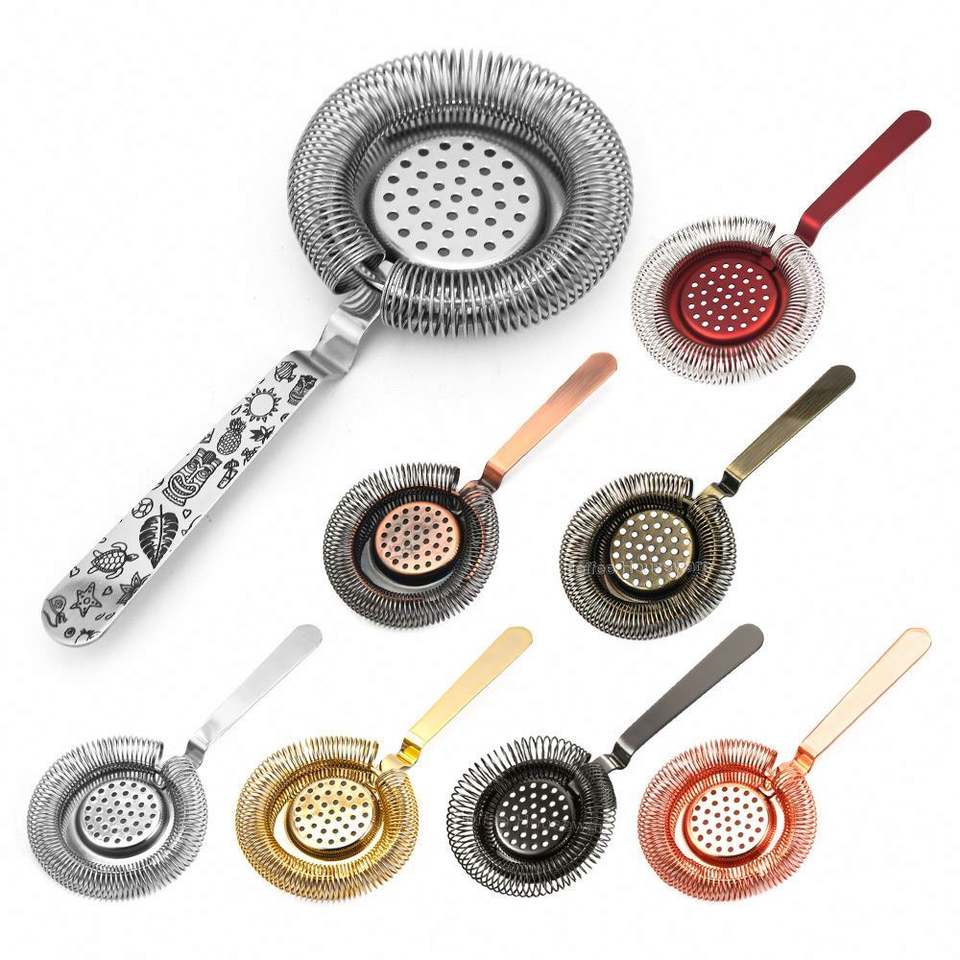 Custom Logo Color 304 Stainless Steel Bent Handle High Density Spring Bartender Cocktail Beverage Mixing Hawthorne Strainer