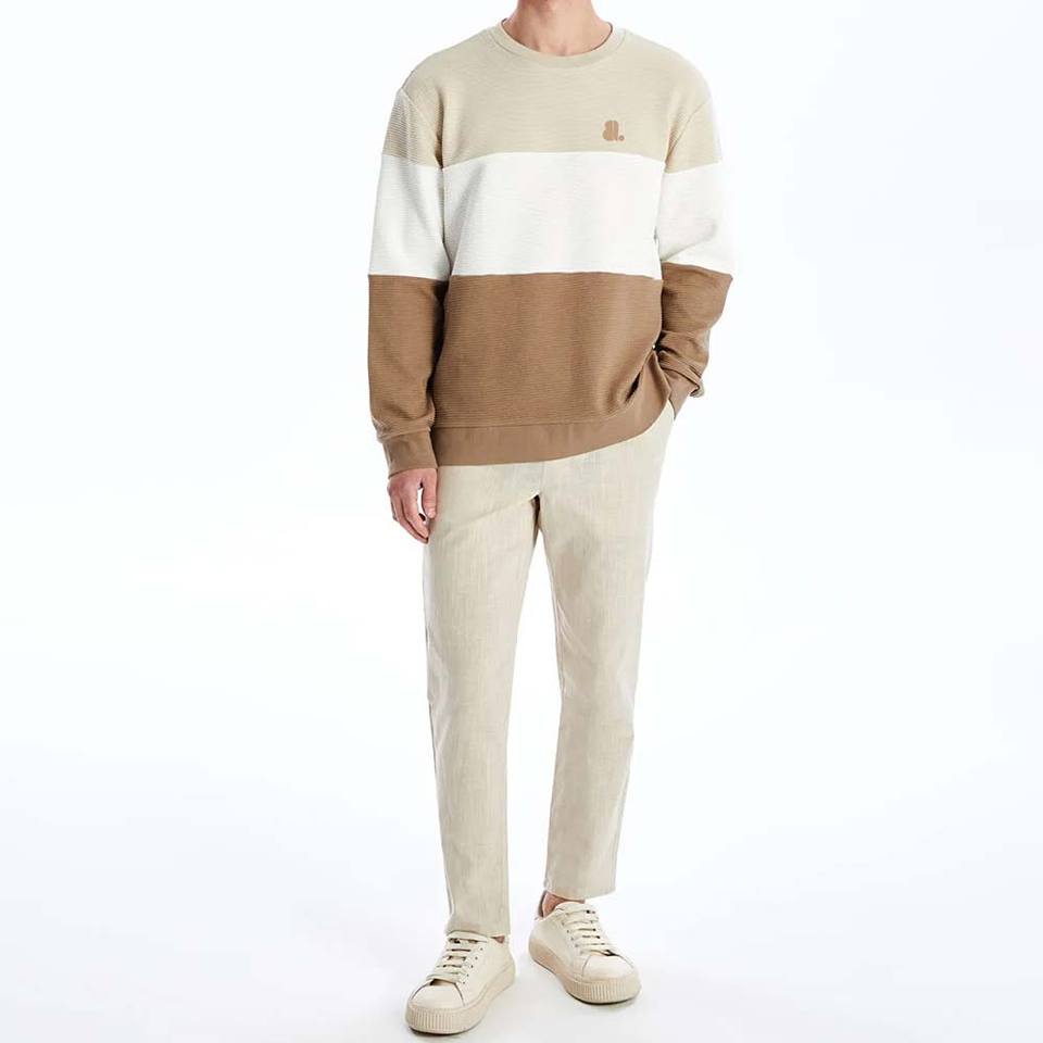 2026 Autumn Men's Color Block Crew Neck Oversized Pullover Sweatshirt-100% Cotton Knitted Breathable Casual Vintage Style