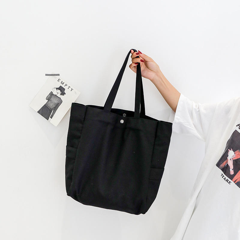 Custom Logo Colorful Solid Color Oversized Canvas Bag Shoulder Tote Bag With Pockets On The Side