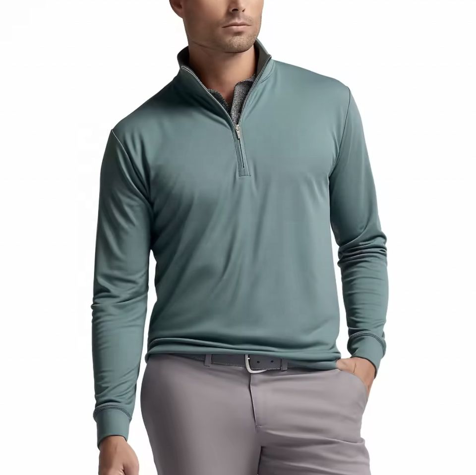 Custom Logo Cotton Athletic 1/4 Quarter Zip Pullover Shirt Slim Fit Long Sleeve Golf Wear Plus Size Available Breathable for
