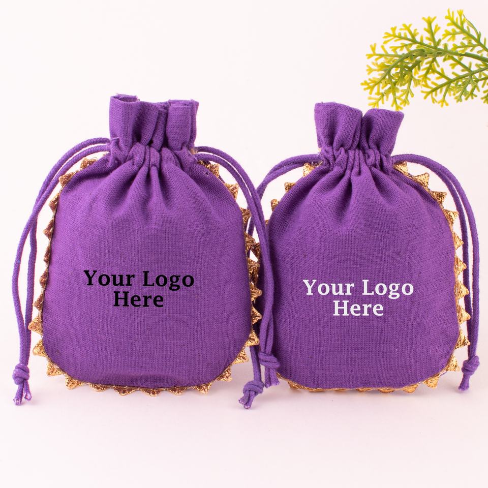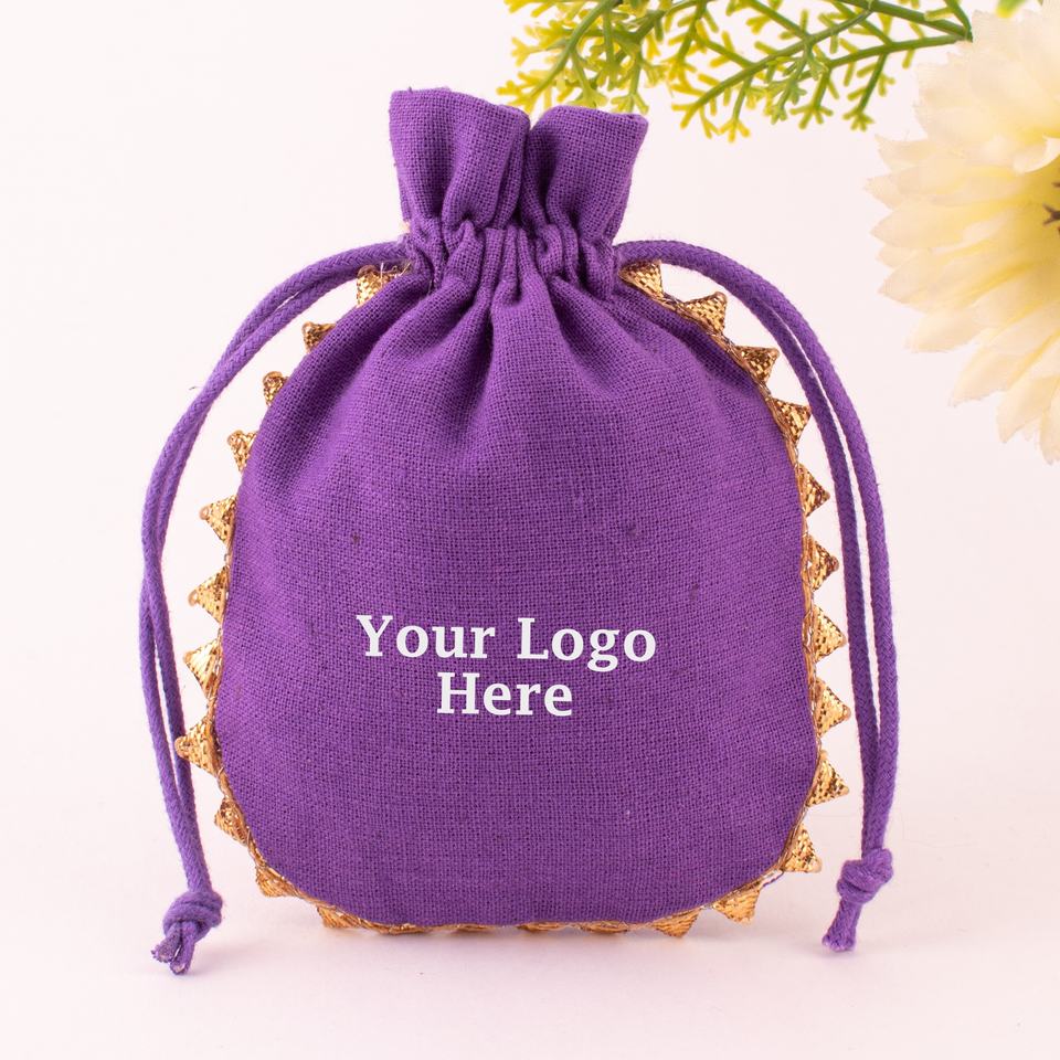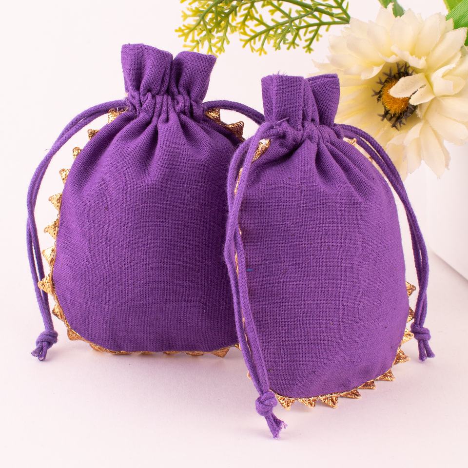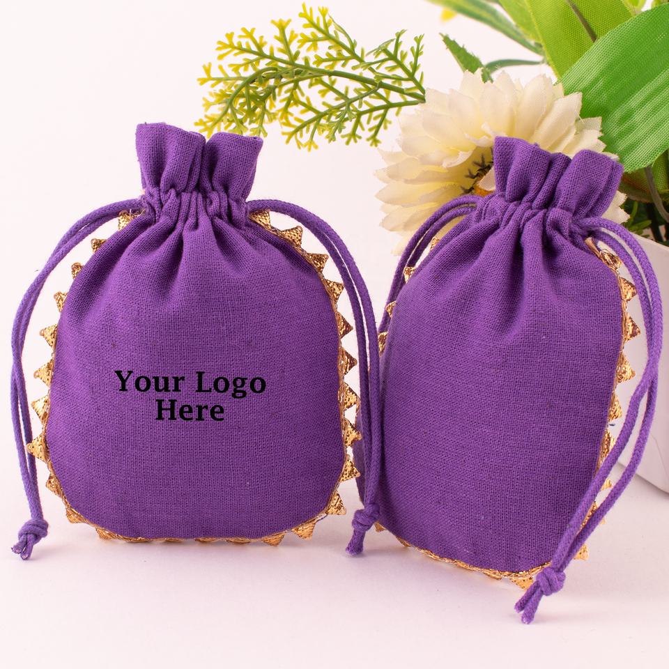 Wholesale Craftjaipur CJCPA-88 Indian Purple Handmade Cotton Drawstring Pouches Custom Logo Wedding Favor 3x4 Inch Jewelry