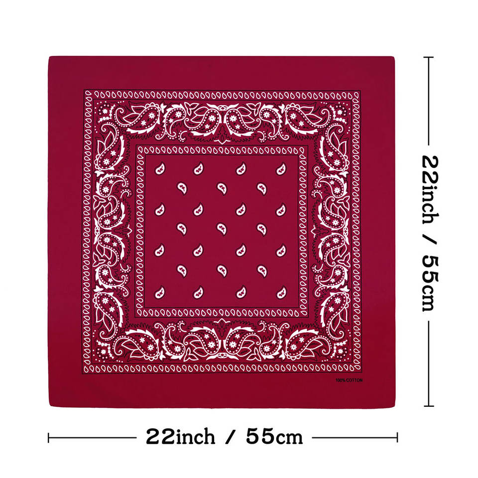 Custom Logo Cotton Polyester Bandana Black&White Paisley Print European-American Style Headwear Square Neck Scarf