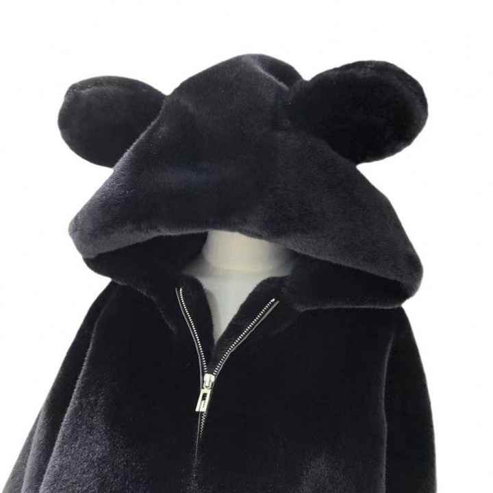 Custom Logo Cotton Winter Warm Cute Ear Fleece Pullover Oversized Sweatshirt Woman Wool Embroidery Zip up Hoodie