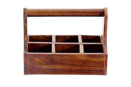 Custom Logo Cutlery Holder Kitchen Acacia Wooden Utensil Caddy Multiple Compartment Flatware Storage Caddy
