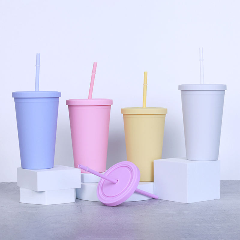Custom Logo DIY 16oz Double Wall Slim Acrylic Matte Tumblers Plastic Reusable Straight Skinny Tumbler Cups with Lid and Straw