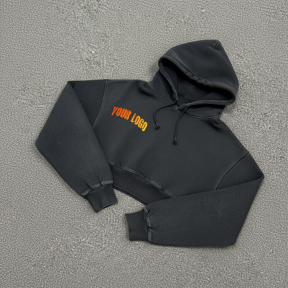 Custom Logo DTG Printed Hoodie Women 400GSM Heavyweight 100% Cotton Sun Faded Vintage Acid Wash Streetwear Pullover Hoodie