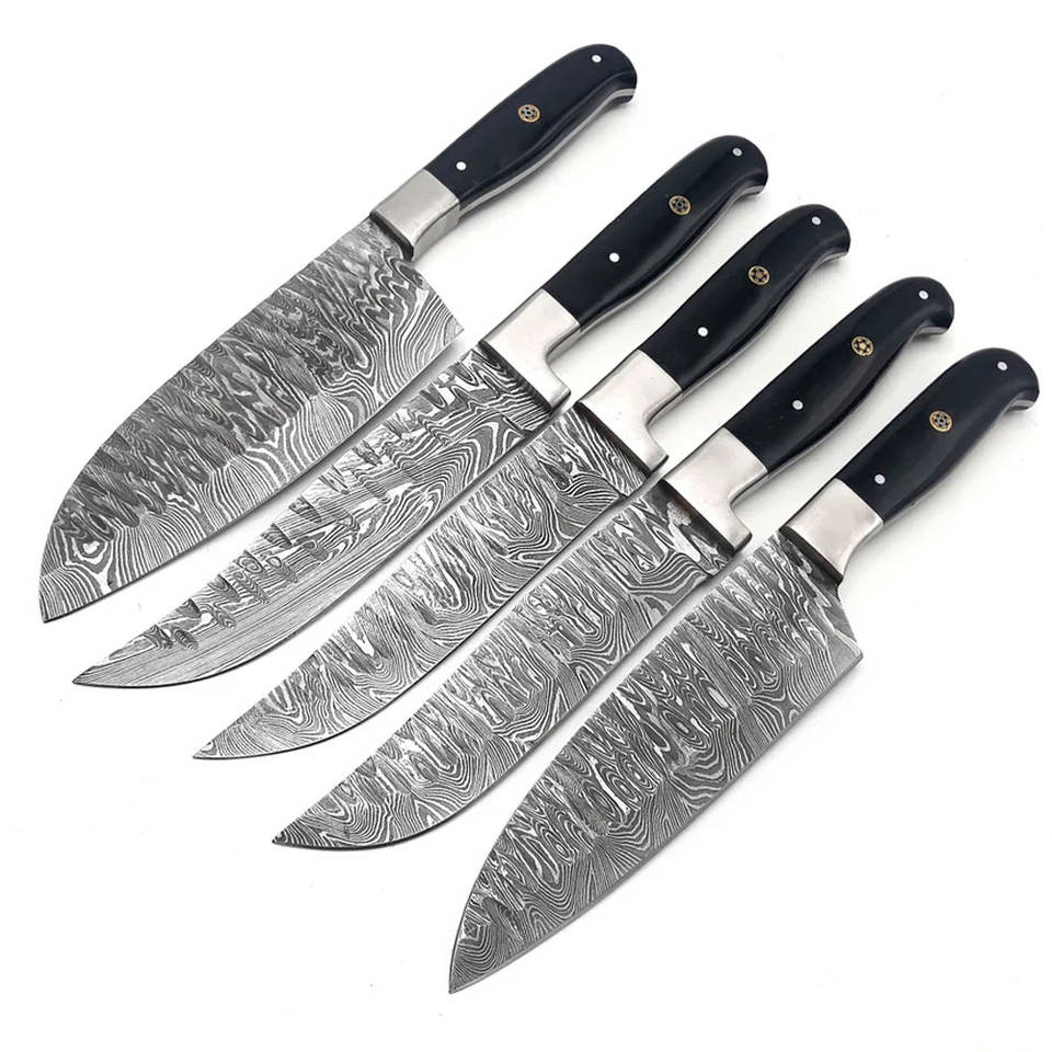 Custom Logo Damascus Steel Kitchen Knife Set with Full Kitchen Solution for Cutting Slicing Dicing and Food Preparation