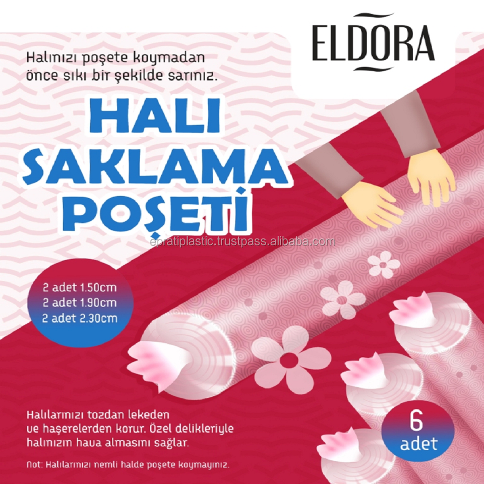 Custom Logo HDPE Waterproof Plastic Rug Storage Bag Color Zip Tie Vent Hole Carpet Polybag