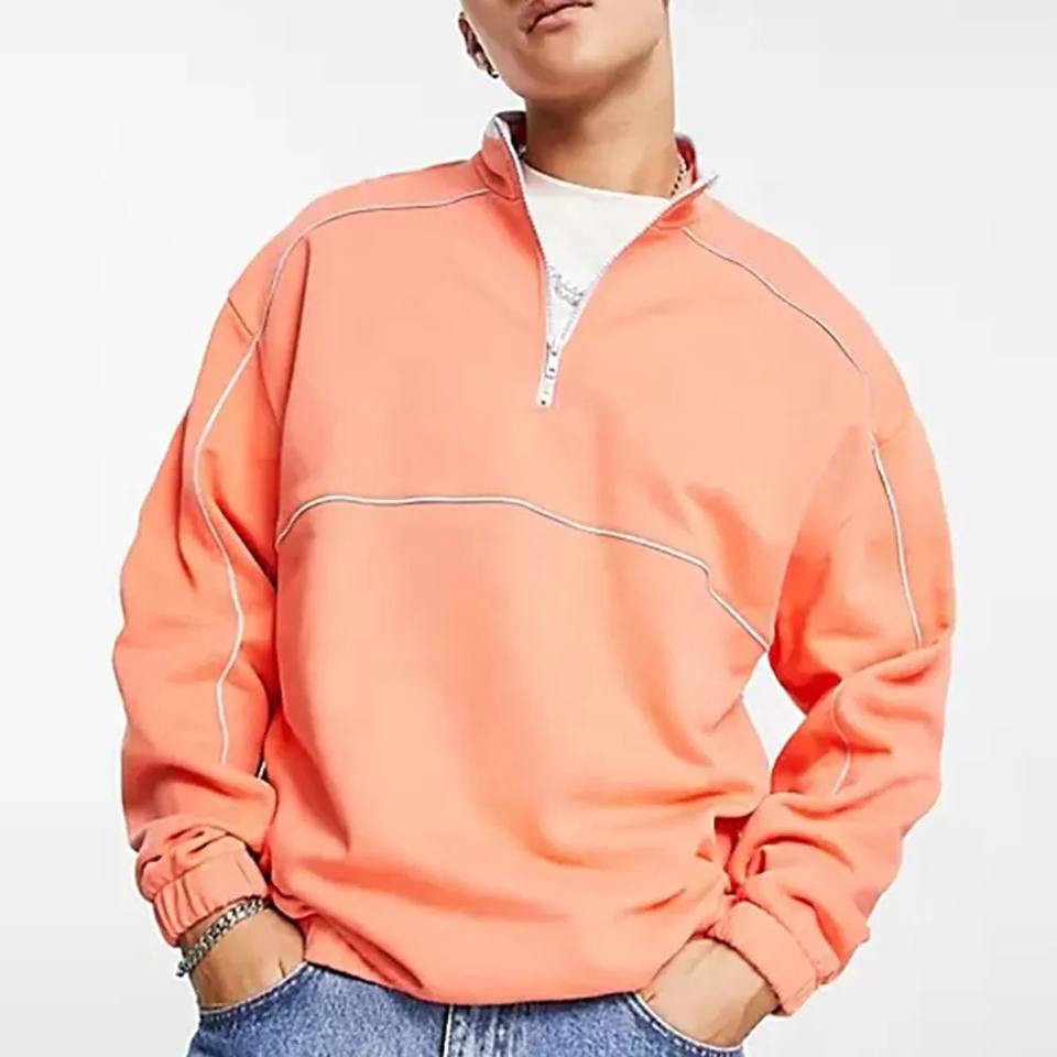 Custom Logo Design Hoodies Men Streetwear Sweatshirt Top Quality Slim 100% Cotton Half Zip Stand Collar Street Wear Sweatshirt