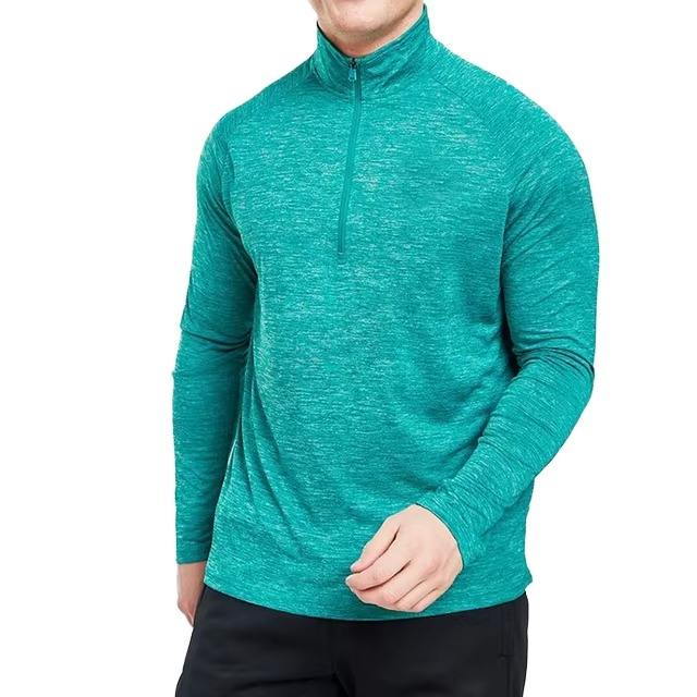Custom Logo Quarter Zip Long Sleeve T Shirt Men Muscle Fit Performance Sports Gym 100% Cotton Canvas Casual Blank Contrast Trim