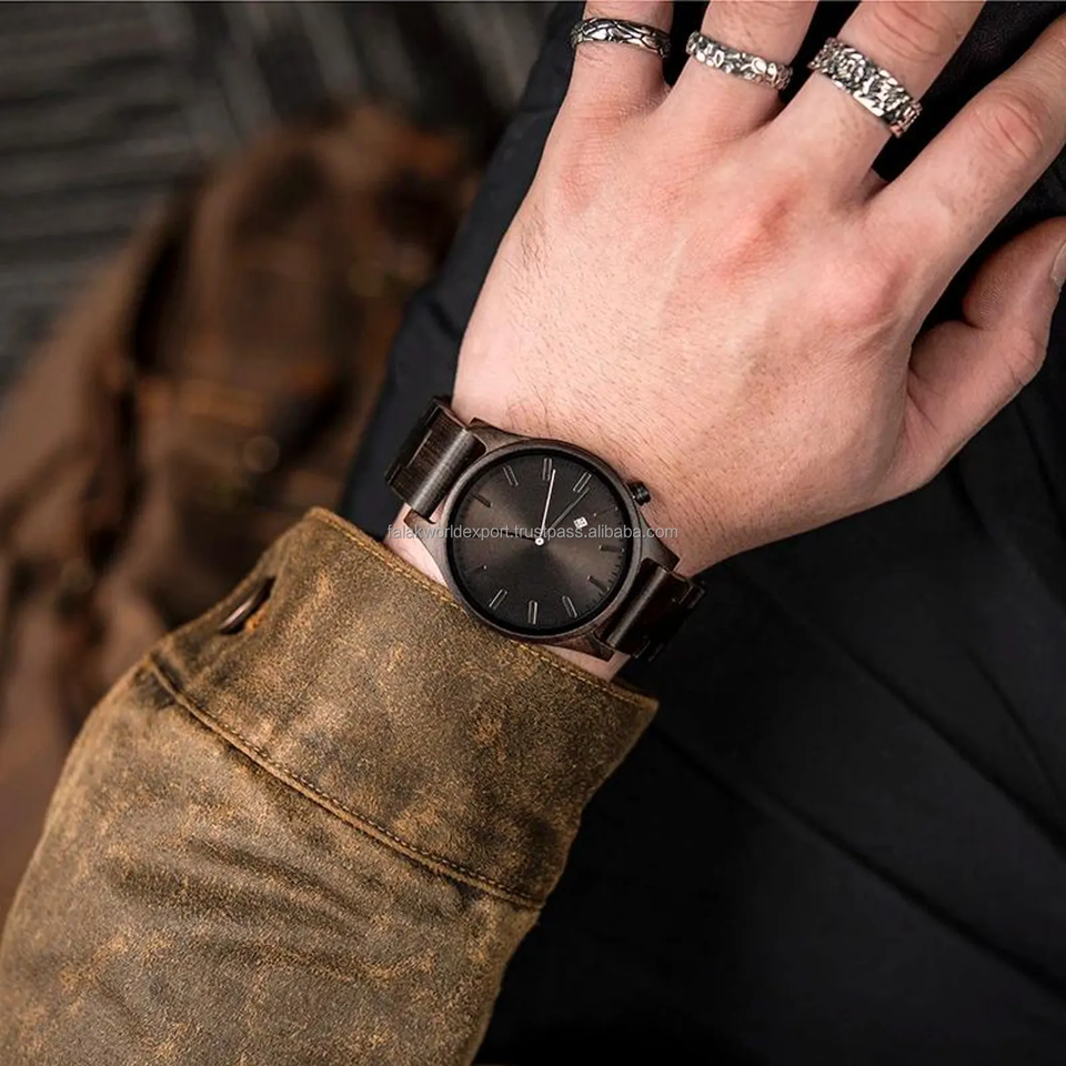 Custom Logo Designer Classic Mens Wrist Watch Full Wood Strap Analog Quartz Watches Wooden Watches for Men Cheap By FWE