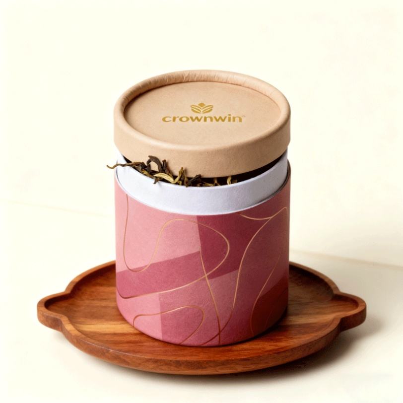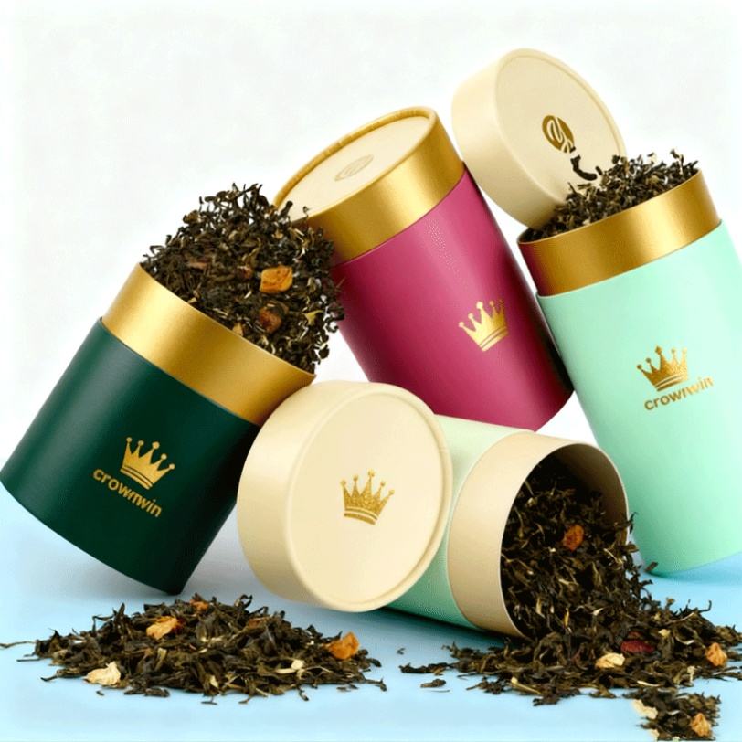 Custom Logo Disposable Eco-Friendly Craft Food Grade Cylinder Cardboard Paper Luxury Boxes Vanishing Gold Stamp Tea Coffee