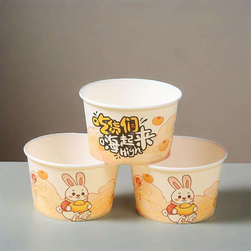 Custom Logo Disposable Fast Food Packaging-White Kraft Paper Salad Bowl with Lid for Cookie Snack Bread Pizza Hamburger Takeaway
