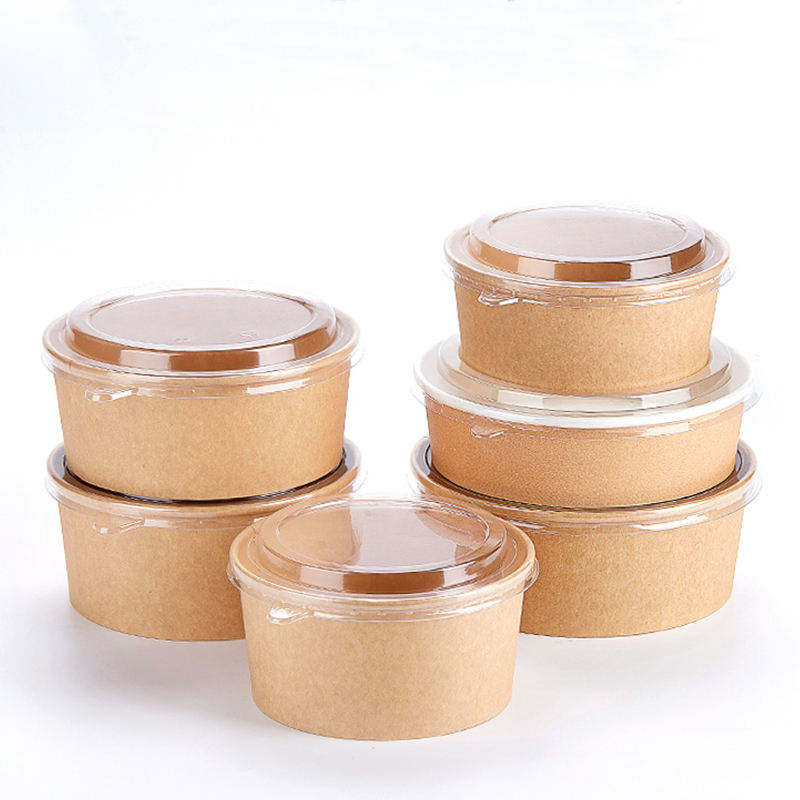 Custom Logo Disposable Round Salad Bowl Food Grade Kraft Paper for Snacks Cookies Chocolate and Fruits