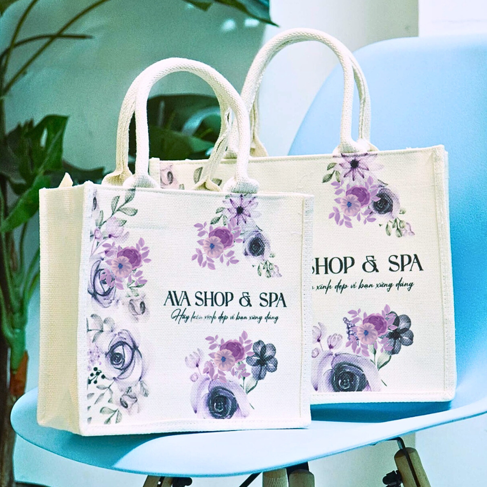 Custom Logo Zipper Closure Classic Style Jute Shopping Bag Letter Pattern Design for Holiday Decoration Gift Use Made Vietnam